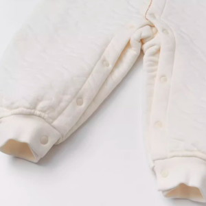 留め具:首から脚までスナップボタンで開閉するフロントは、着脱が簡単で、おむつ交換も素早く行えます。ニッケルフリーの滑らかなスナップボタンは、デリケートな肌にも優しくフィットします。