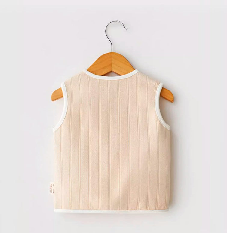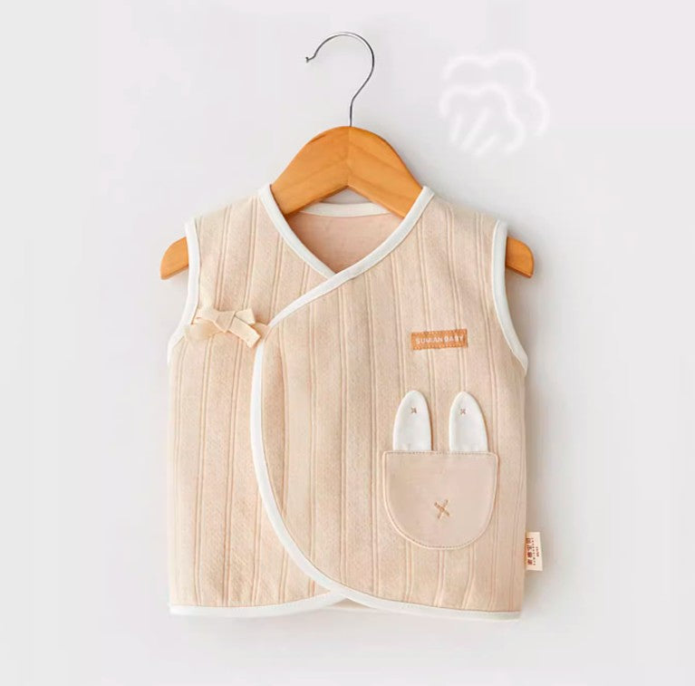 このベビー用斜め前立てタイストラップベストは、赤ちゃんのために特別にデザインされたスタイリッシュで暖かいアイテムです。