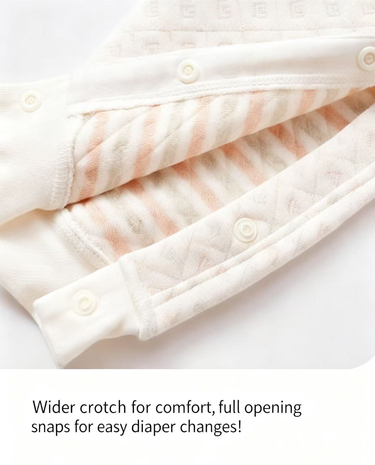 Features a delicate Peter Pan collar that adds classic charm to these baby rompers. The soft, flat-lying design ensures comfort without irritation around baby's neck.